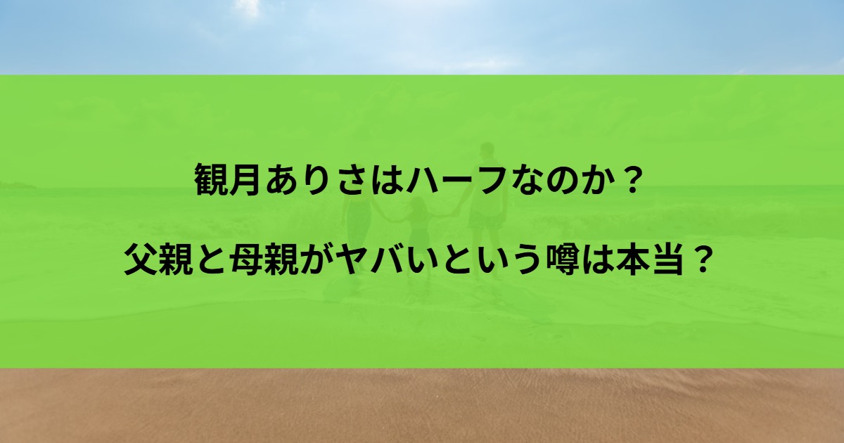 そこで今回は、観月ありささんのご両親についての情報を中心に、「ハーフ説の真相」や「家族にまつわる背景」に迫っていきます。