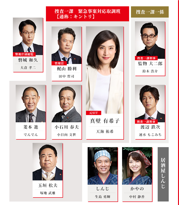 『緊急取調室』の舞台は、警視庁捜査一課の特殊チーム「緊急事案対応取調班(通称:キントリ)」。