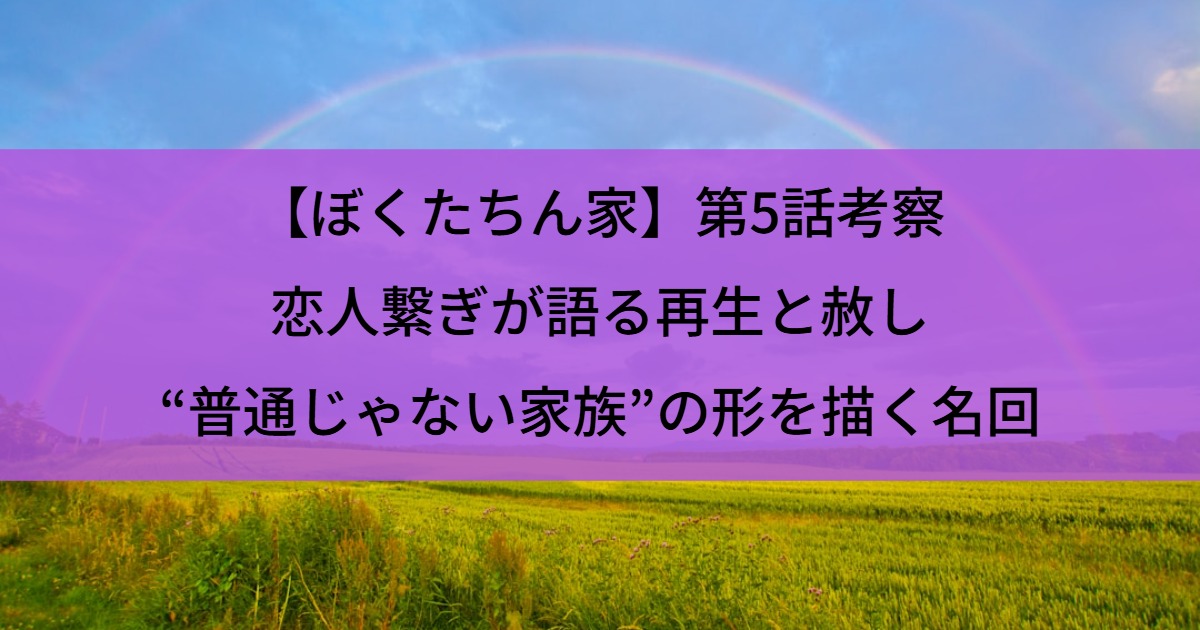 『ぼくたちん家』第5話は、派手な展開こそないものの、人の優しさがどんな瞬間に形を持つのかを丁寧に描いた回でした。