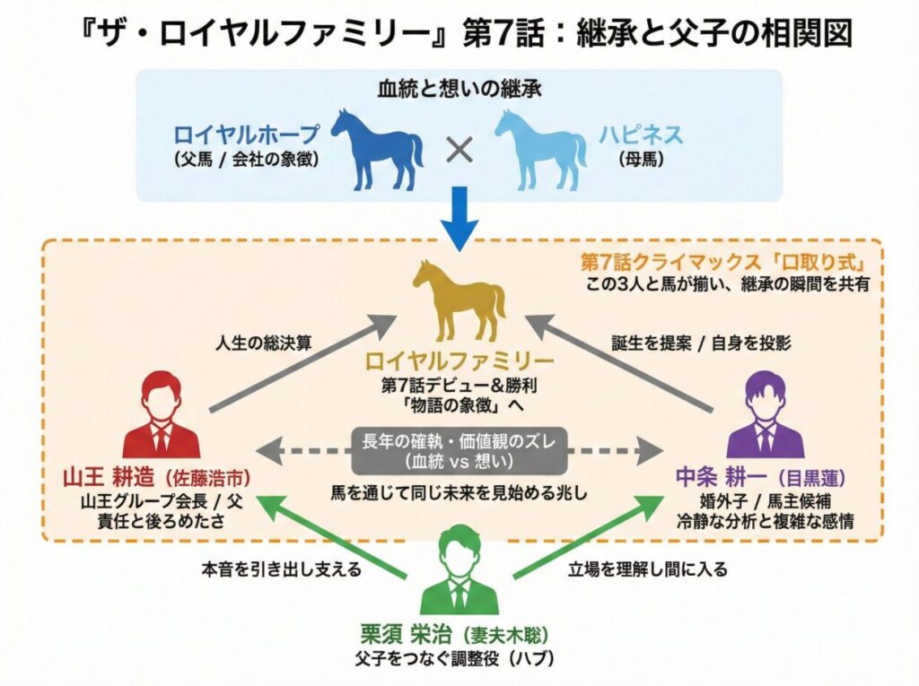 本記事では、第7話のあらすじ・感想・ネタバレをおさらいしつつ、ロイヤルファミリー誕生が示した”継承”の意味や、耕造さん×耕一さんの価値観のズレ、Xでの盛り上がり、次回の有馬記念への伏線までを、視聴者目線でじっくり深掘りしていきます。
