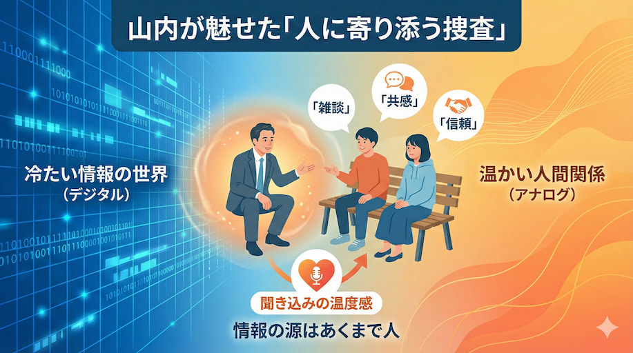「警察官だから聞いてる」のではなく、「一人の人間として気になっている」という温度感が伝わってくるからこそ、相手の警戒心が少しずつほどけていく。