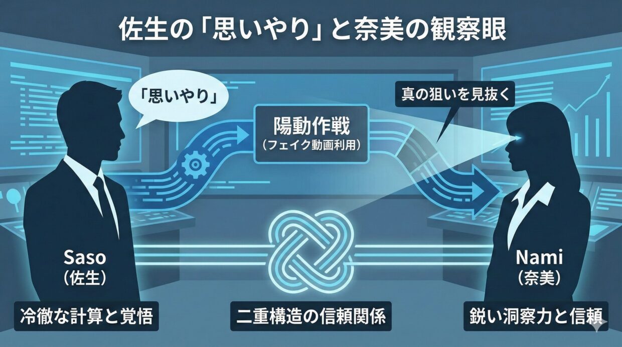 佐生の”思いやり”は、単なる優しさではなく、国家を守るためにあえて冷徹な手段を選ぶ覚悟でもある。