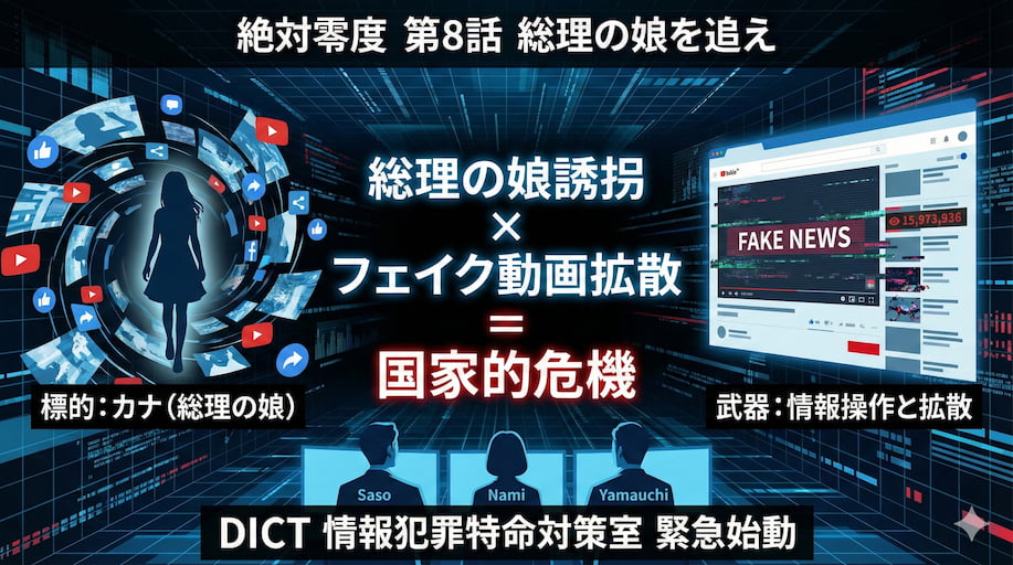 警察庁は極秘で総合対策本部を立ち上げ、DICT(情報犯罪特命対策室)の佐生本部長が指揮を執ることになります。