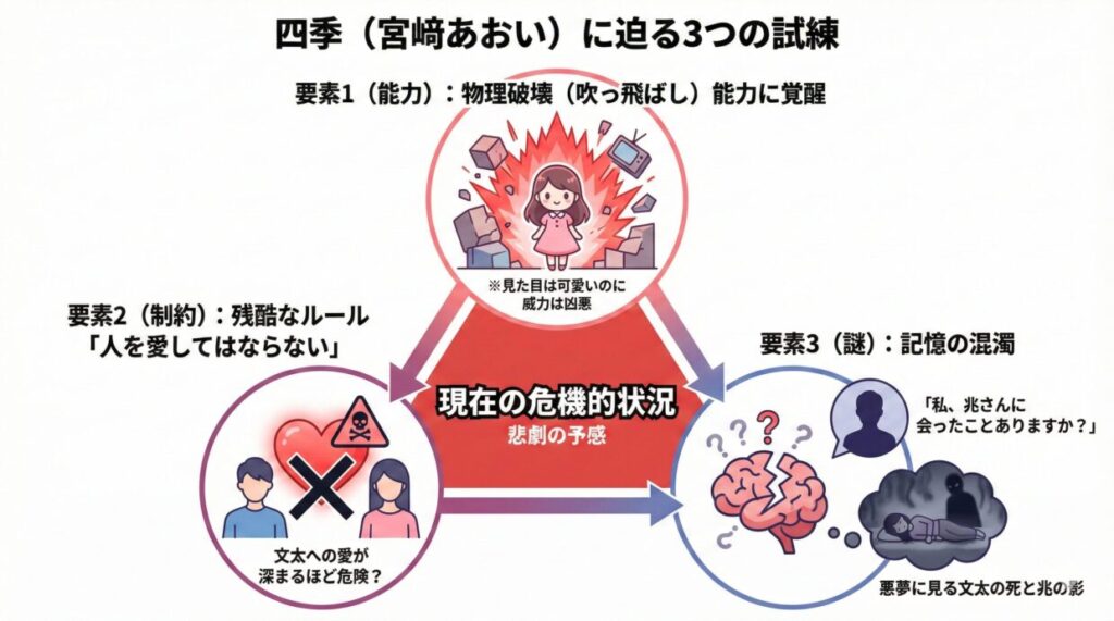 能力を使って文太を守ろうとする四季の姿は、勇ましくもあり、どこか悲劇のヒロインのようにも見えてなりませんでした。