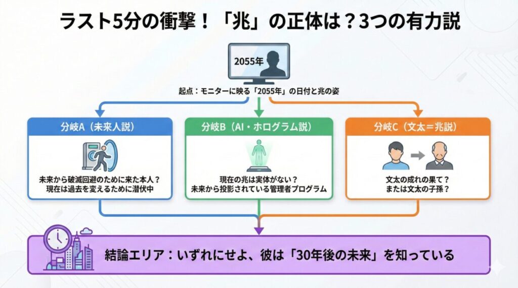 - ラスト5分で判明した「2055年設定」と兆の正体考察