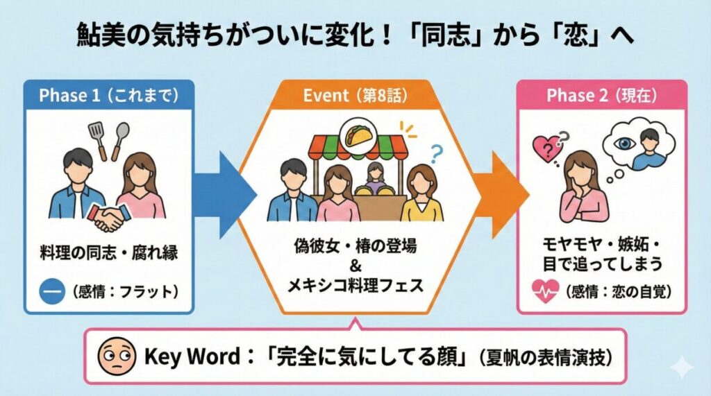 鮎美の揺れるまなざし──気付いてしまった恋心と嫉妬の形