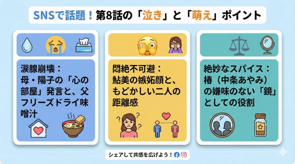 本記事では、第8話のネタバレあらすじと共に、SNSで話題になったシーンや視聴者のリアルな感想、そして気になる次回の展開予想をたっぷりお届けします。