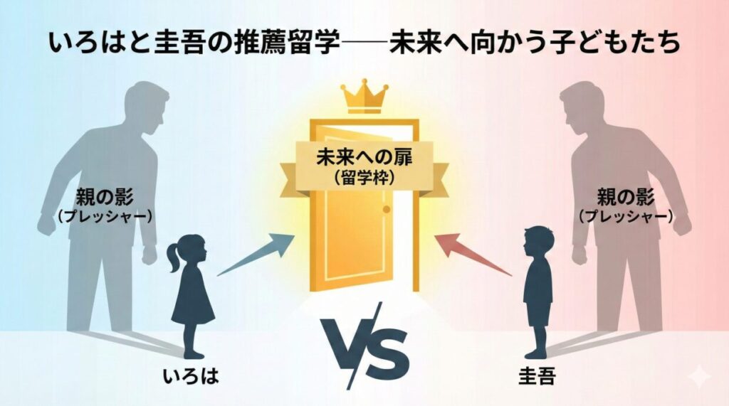 「ジーニアス推薦留学制度」の最終候補に残ったいろはと圭吾(高嶋龍之介さん)。