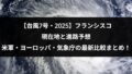 台風の場合、アジア14か国が事前に提出した140個の名前を順に使用するスタイルですが、**ハリケーンには「6年で循環する名前リスト」**があり、英語・スペイン語・フランス語などの名前が組み合わされています。