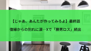 ドラマ 【じゃあ、あんたが作ってみろよ】最終話|復縁からの別れに涙…Xで「勝男ロス」続出 ドラマ『じゃあ、あんたが作ってみろよ』最終話のネタバレ感想!復縁から一転、なぜ二人は別れを選んだのか?SNSでトレンド入りした「勝男ロス」や番組最高視聴率8.7%の背景、南川さん(杏花さん)の活躍を含めて徹底解説します。 ドラマ