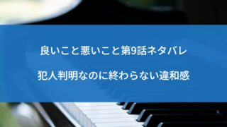 ドラマ 良いこと悪いこと第9話ネタバレ|犯人判明なのに終わらない違和感 【ネタバレあり】『良いこと悪いこと』第9話感想。ついに犯人・宇都見真(木村昴)が逮捕!涙腺崩壊の「カノン」演奏シーンと、解決したはずなのに残る「終わらない違和感」の正体を徹底解説します。 ドラマ