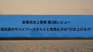 ドラマ 新東京水上警察 第3話レビュー|碇拓真のサバイバーズギルトと有馬礼子の“引き上げる力” 新東京水上警察3話のネタバレ感想。碇の告白と再生、日下部の劣等感、有馬の“救う力”、黒木の政治性まで——人物ドラマに焦点を当てて深掘り。 ドラマ