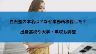 女優 白石聖の本名は?なぜ事務所移籍した?出身高校や大学・年収も調査 白石聖の本名や事務所移籍の理由、出身高校・大学・年収など気になるプロフィールを徹底解説。経歴や性格の特徴まで、これまでの歩みをわかりやすくまとめました。今後の活躍にも注目です。 女優