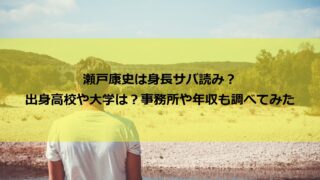 俳優 瀬戸康史は身長サバ読み?出身高校や大学は?事務所や年収も調べてみた 俳優の瀬戸康史さんは、どこの高校や大学に通っていたのでしょうか。身長サバ読みや霊感が強いという噂は事実なのでしょうか。今回は、瀬戸康史さんの経歴や出身学校、ネット上の噂について調べてみました。瀬戸康史は身長をサバ読みしてる?瀬戸康史さんの公... 俳優
