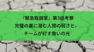 ドラマ 『緊急取調室』第3話考察|完璧の裏に潜む人間の弱さと、チームが灯す救いの光 『緊急取調室』第3話を徹底レビュー。戸次重幸さんの圧巻演技、“梶真”の再燃、SNSで話題の名シーンまで深掘り!最終章『THE FINAL』への布石も分析。 ドラマ