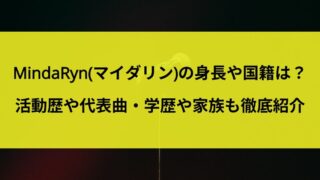 歌手 MindaRyn(マイダリン)の身長や国籍は?活動歴や代表曲・学歴や家族も徹底紹介 MindaRyn(マイダリン)の身長・読み方・国籍・年齢を徹底解説!YouTube発のアニソン歌手としての活動歴や代表曲、学歴や家族エピソードも紹介します。 歌手